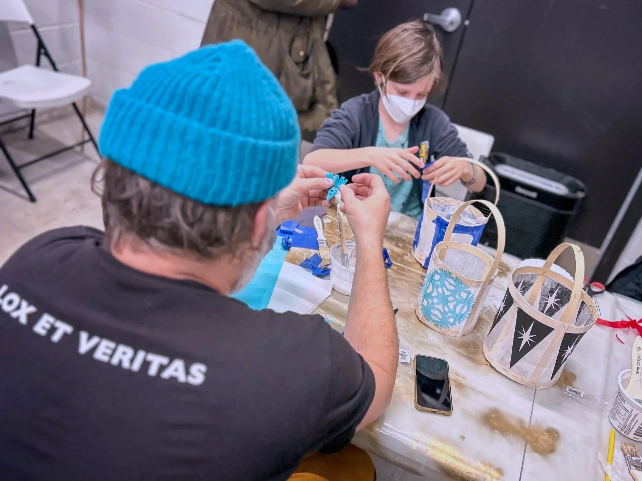 Meet us at 6:15 pm near the Dufferin Grove Rink House for a light-filled procession around the park—glowing lanterns, giant puppets, music, and a joyful crowd of neighbours. Borrow Clay and Paper Theatre lanterns and noisemakers from the Rink House, then help decorate the Children’s Garden and its new apple trees with community-made ornaments. This is the first station of our evening together: the Ceremony of the Ornaments.